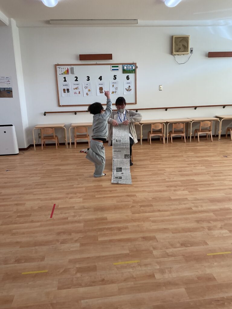 昭和の遊びを運動遊びの時間に取り入れるため模擬授業を行いました。